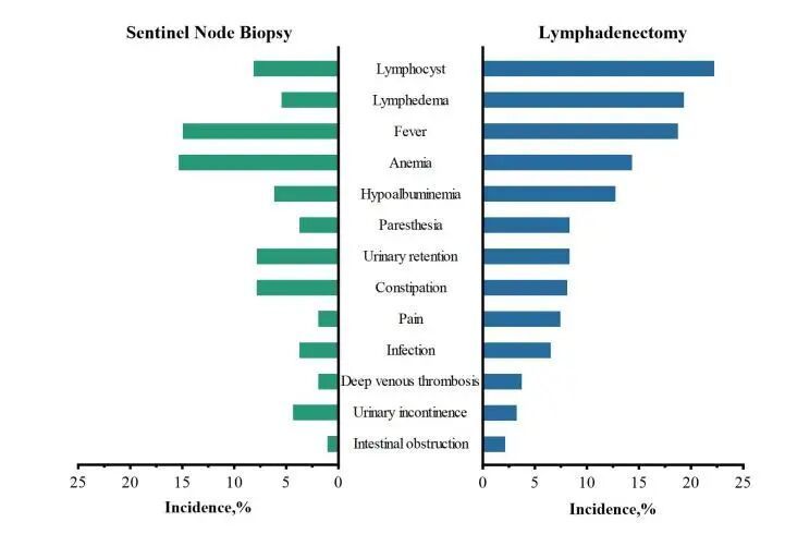 前哨淋巴结活检组对比系统性淋巴结清扫组的术后并发症发生率更低
